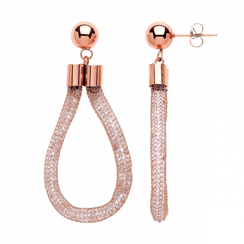 Stainless Steel Rose Gold Plated Mesh & Crystal DropEarrings