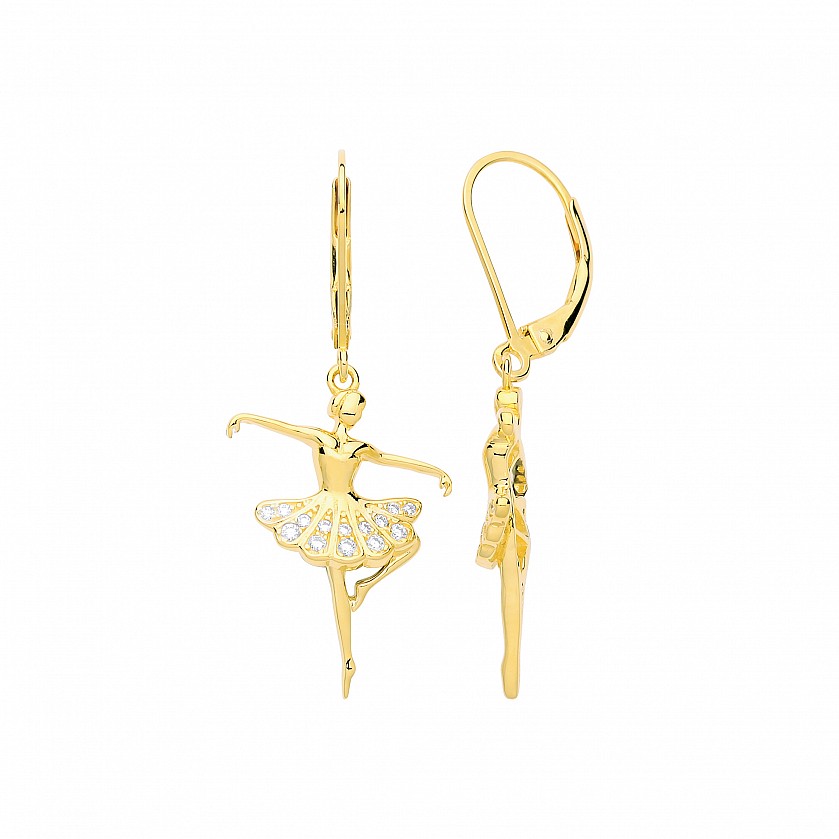 Gold Plated CZ Ballerina Fancy Drop Earrings