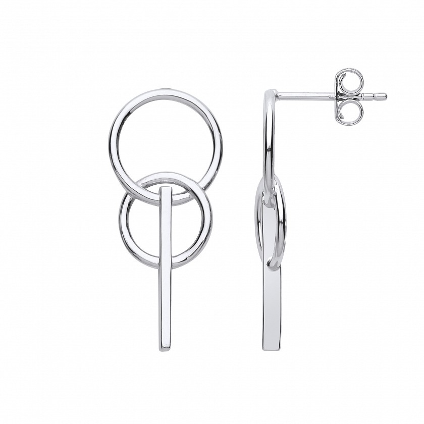 925 Sterling Silver Double Circle & Bar Drop Earrings