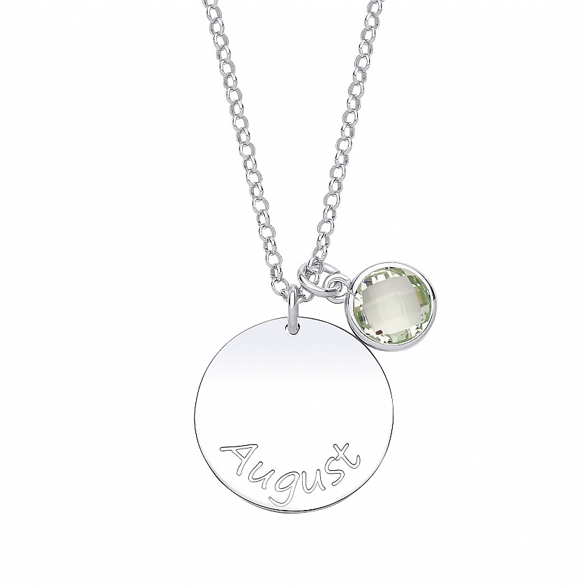 Silver August Peridot Birthstone Disc Pendant Necklace