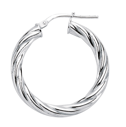 925 Sterling Silver Plain Twist Hoops: 25mm diamter, 3mm tube