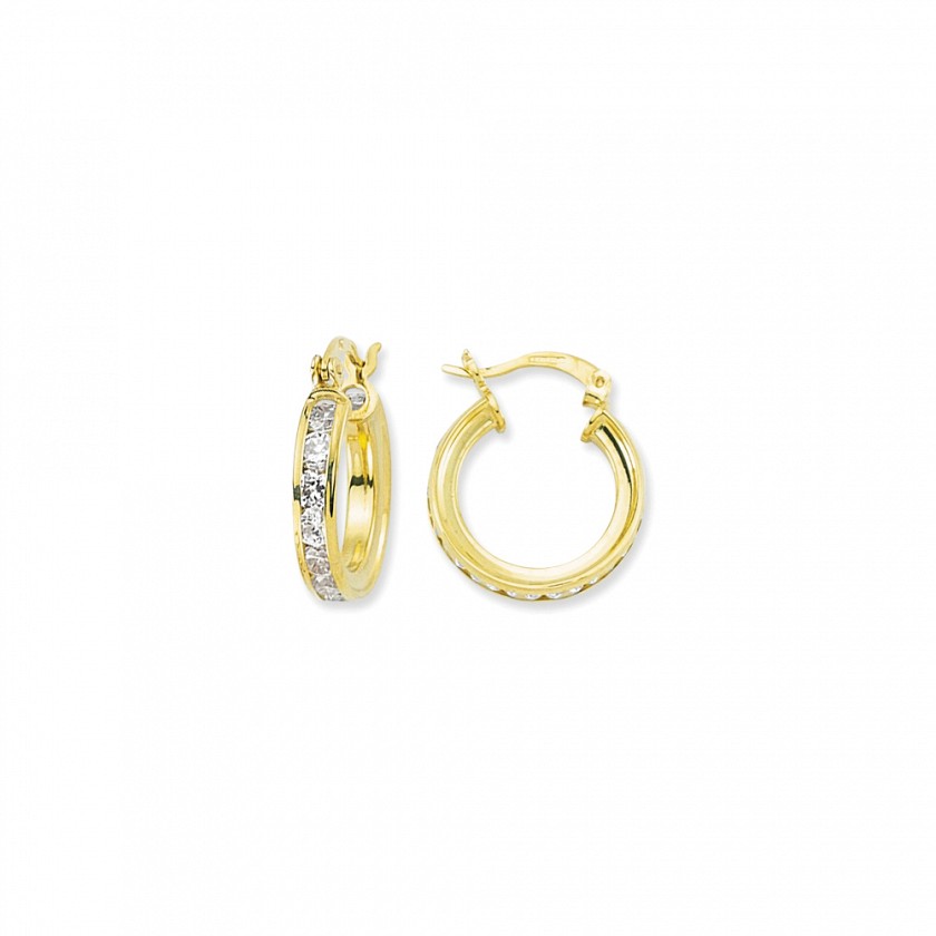 9ct Yellow Gold Hoops w/Channel Set CZ
