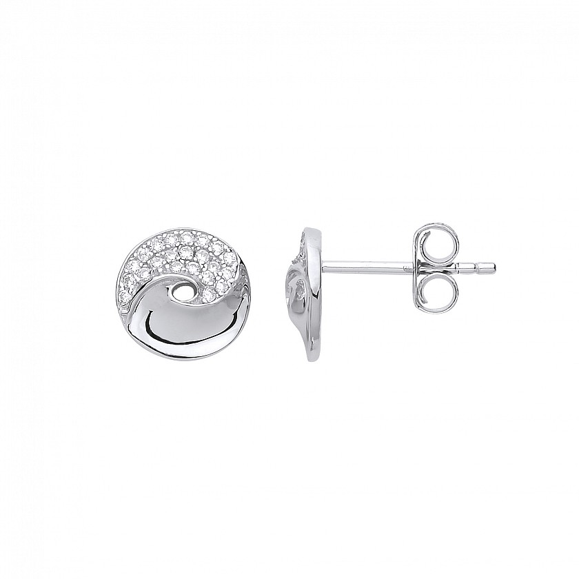 Silver CZ Twisted Interlocking Circle Stud Earrings