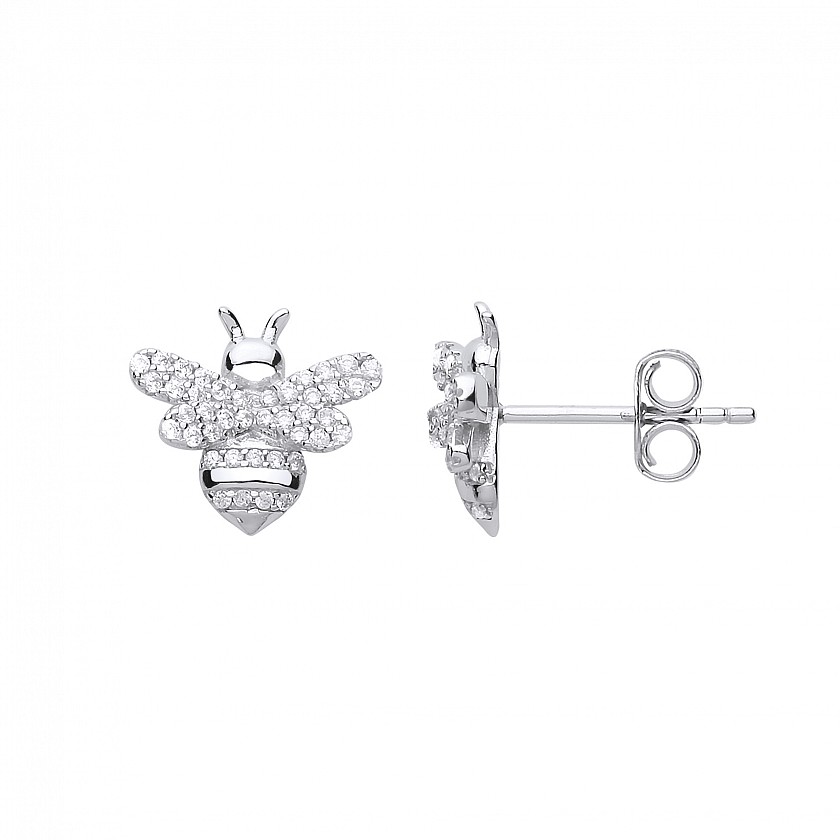 925 Sterling Silver CZ Bumble Bee Stud Earrings