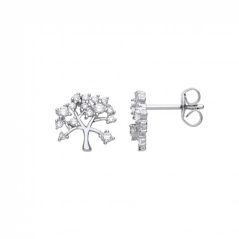 Silver CZ Tree Of Life Stud Earrings
