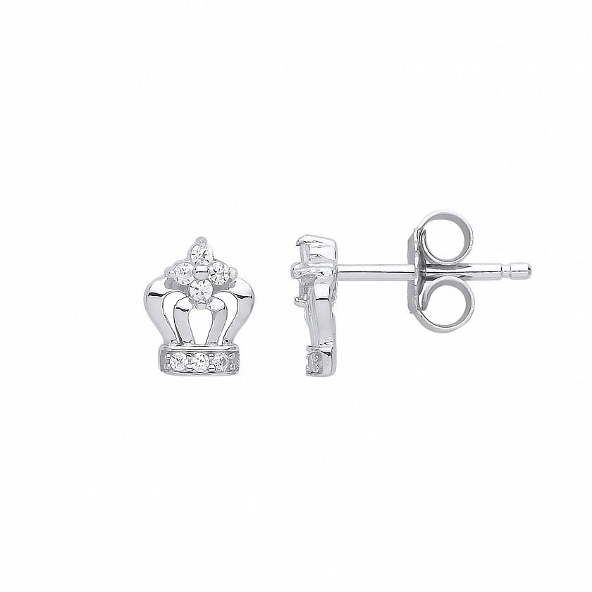 925 Sterling Silver CZ Princess Crown Stud Earrings