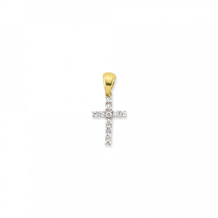 9ct Yellow Gold Cross with Cubic Zirconia Stones